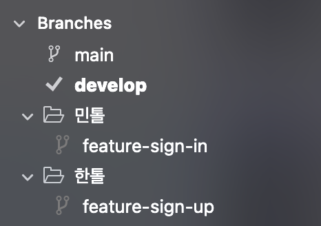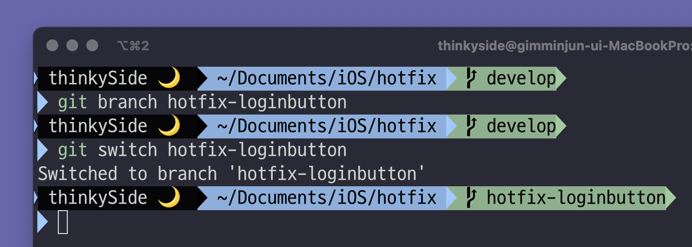 하지만 develop 브랜치에서 바로 hotfix 내용을 수정하면 안 되겠죠? 이를 수정하기 위한 브랜치를 새로 생성합니다.