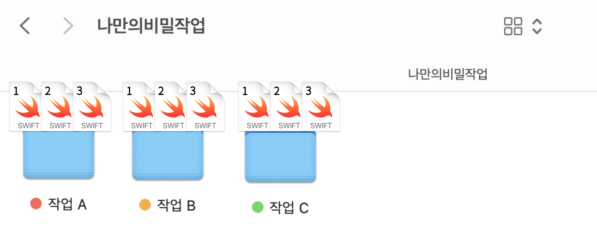 그렇습니다. 문제는 하나의 디렉토리에서 모든 작업을 진행하고 있는 것이기 때문에, 직관적으로 여러 개의 디렉토리를 만들면 되겠구나!라는 생각을 할 수 있습니다. 가장 기본적인 방법이기도 하며, 실제로 앞서 언급한 문제들을 해결해 줄 수 있을 것입니다. 아래와 같이 세팅해 두면 branch를 이동하는 것이 아닌, 디렉토리 위치를 변경하는 것으로 각각의 프로젝트를 관리할 수 있게 됩니다. 이 방법은 별개의 3개의 프로젝트를 만드는 것과 같습니다!