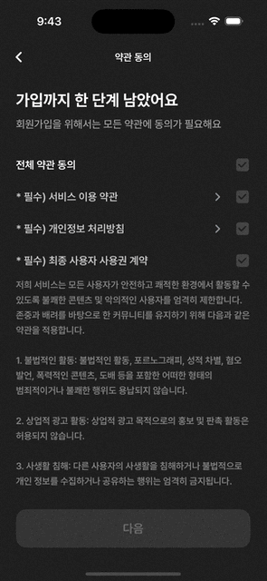 - 전체 약관 동의 후