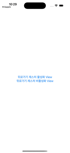 결과적으로, 특정 View에서 뒤로가기 제스처 비활성화에 성공했습니다! 하지만 걸리는 점이 있다면, 뒤로가기 제스처를 기본적으로 활성화할 View에서도 위 task modifer를 통해 매번 값을 업데이트 해주어야 한다는 것입니다.