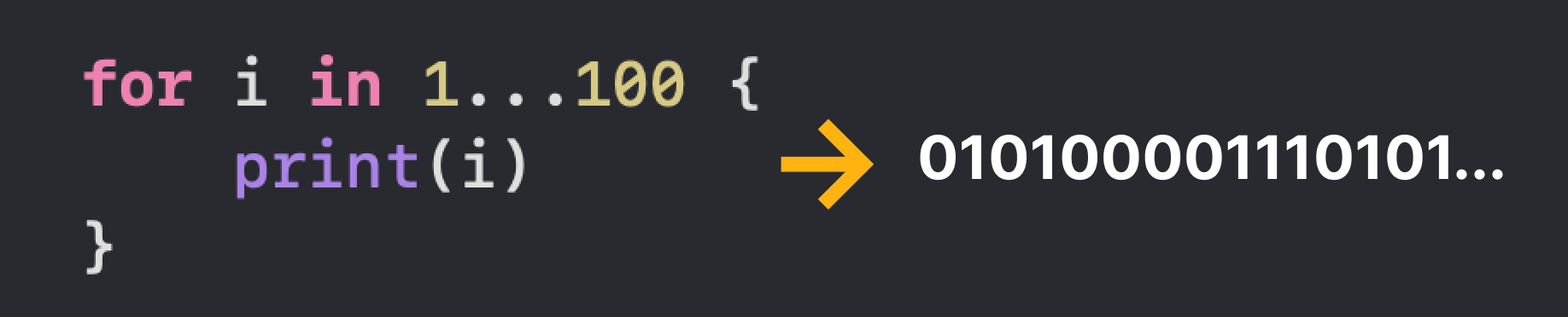 그러나 컴퓨터 세상이 0과 1로 이루어져 있다는 사실은 변함이 없습니다. 그 말인즉슨, 우리가 열심히 Swift나 Python 등으로 코드 작성 후 빌드 버튼을 누르면 컴파일러나 인터프리터에 의해 기계어로 변환되는 것을 알 수 있습니다.