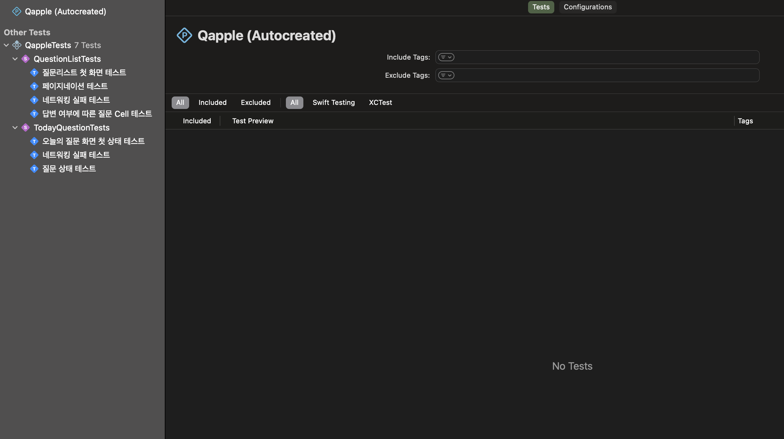 ++ 추가로 알게 된 사실은 TestPlan은 생성할 때의 테스트 목록이 유지되는 것이 아니라 UnitTest 타겟과 연동되어 실시간으로 업데이트 됩니다. 사실상 Autocreated로 안쓰고 진작에 Test Plan으로 사용해야 했을지도요,,?