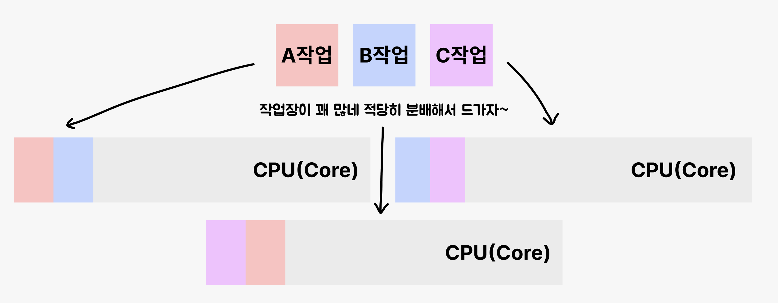 하나의 CPU(Core)가 여러 개의 작업을 동시에 실행하는 것